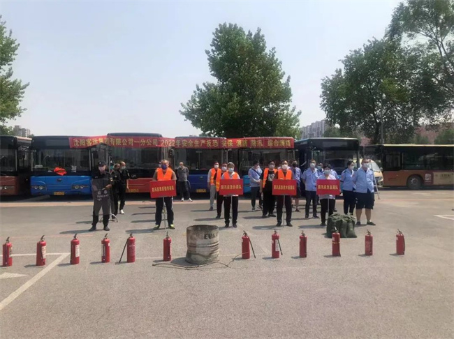 會(huì)后,在公司院內(nèi)進(jìn)行實(shí)地演練,模擬公交車輛突發(fā)火災(zāi)時(shí),駕駛員在應(yīng)急情況下緊急停車,疏散乘客,正確使用滅火器進(jìn)行滅火等內(nèi)容。