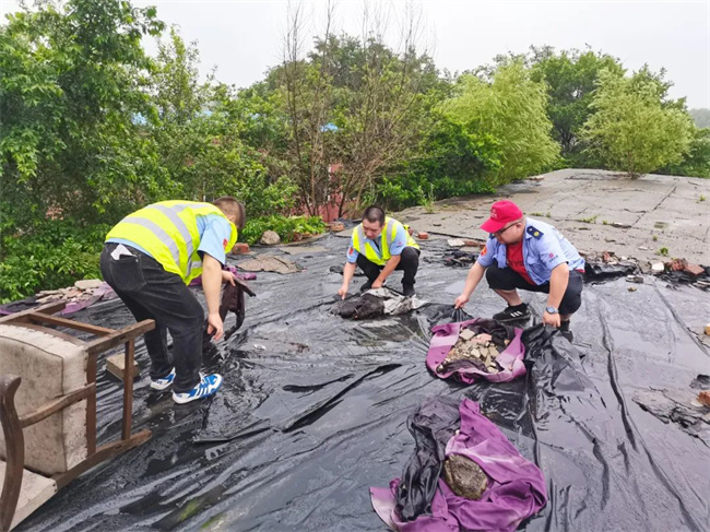通利公司部分場(chǎng)區(qū)站務(wù)設(shè)施被暴雨損壞,工作人員及時(shí)修補(bǔ)、清理。