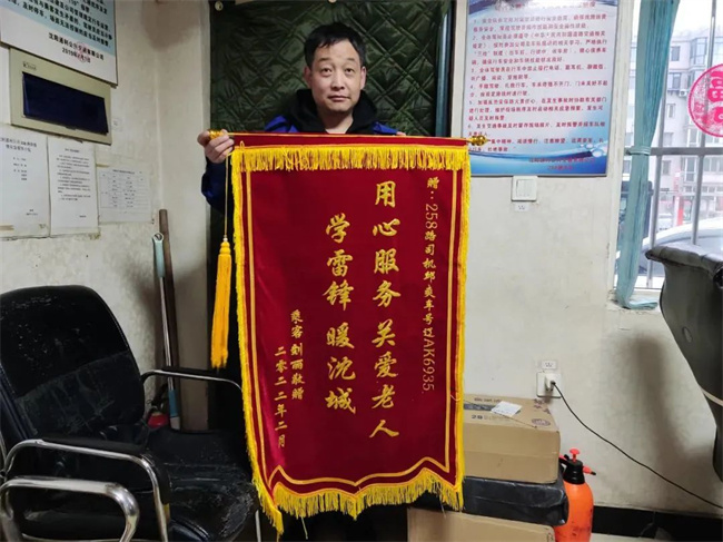2月10日,258路車隊(duì)迎來一位熟悉的面孔,她帶著印有“認(rèn)真負(fù)責(zé) 拾金不昧”的錦旗,說是要謝謝駕駛員房冬生。