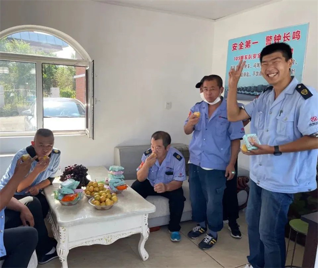 各車(chē)隊(duì)為駕駛員們準(zhǔn)備了香甜的月餅和豐富的水果。車(chē)隊(duì)就像一個(gè)大家庭,有駕駛員不常吃甜食,兩人分食一塊月餅也其樂(lè)融融,大家在車(chē)隊(duì)里度過(guò)了一個(gè)圓圓滿滿的中秋節(jié)。