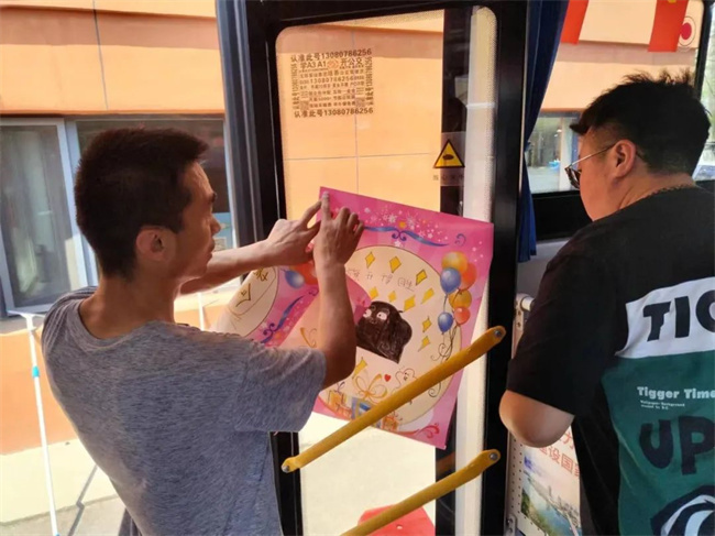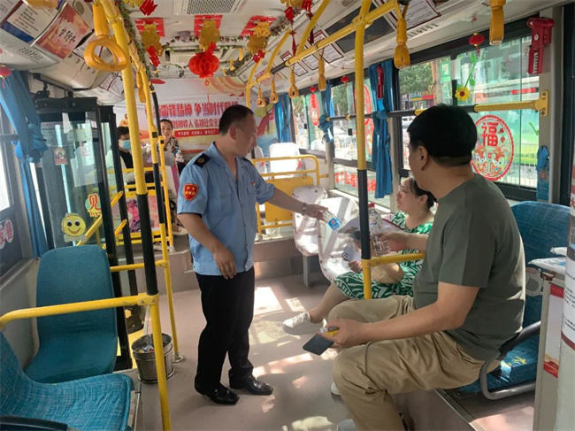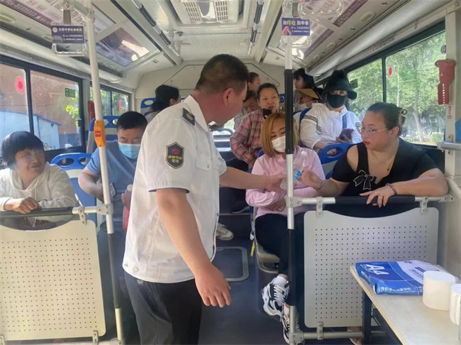 期間學(xué)生家長(zhǎng)在公交車上休息,王樹祥為大家準(zhǔn)備了水、急救物資、乘涼用品等,家長(zhǎng)們對(duì)車隊(duì)提供便利條件和溫馨的舉動(dòng)表示感謝。