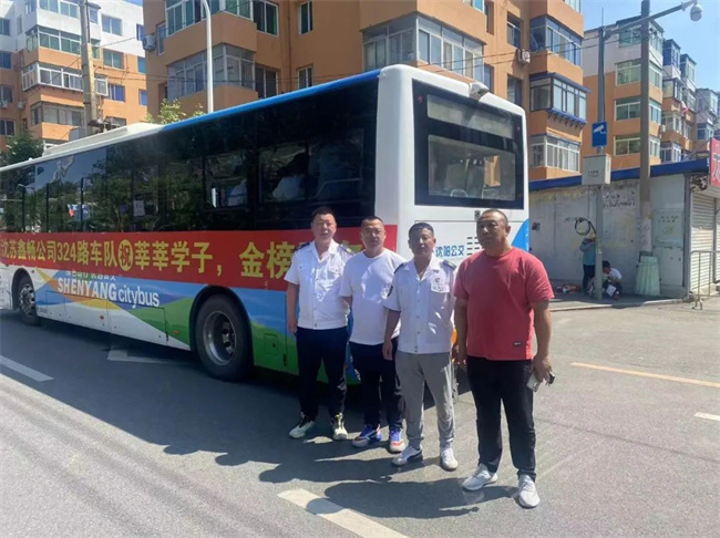 224路駕駛員王樹祥早早來到沈陽建筑大學(xué)附屬中學(xué)校門前,掛起“224車隊(duì)祝高考考生金榜題名”的橫幅,為考生加油鼓勁。