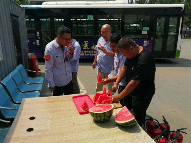 公司各車隊為駕駛員提供了冰鎮(zhèn)礦泉水、綠豆湯、西瓜等防暑降溫食物,保障一線駕駛員的休息質(zhì)量,確保駕駛員以最佳狀態(tài)投入到運營生產(chǎn)工作中。