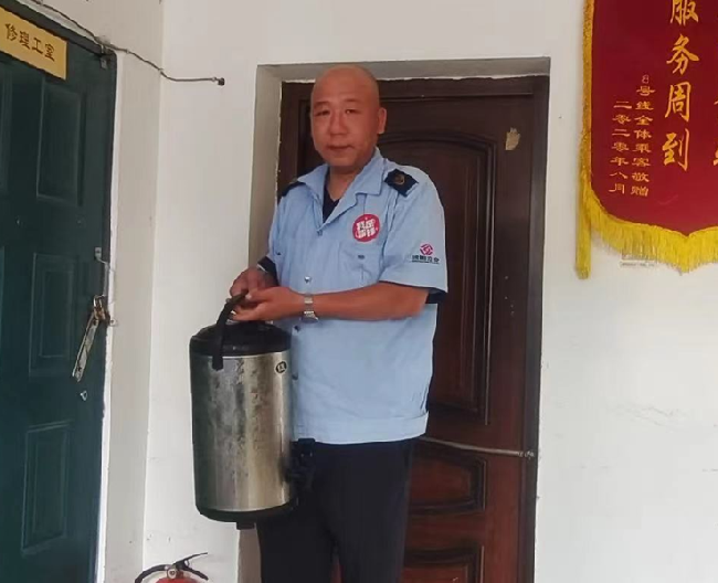 215路駕駛員尚麒麟看到同事們個個大汗淋漓、暑熱難耐,便從家里帶來了冷飲壺,在每天下班時將各種消暑飲品放在冰柜里冷凍,第二天早早來到車隊,把準備好的冷飲放進冷飲壺,供車隊的兄弟姐妹們消暑飲用。