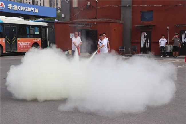 培訓(xùn)結(jié)束后,大家來到通運公司院內(nèi),由李教官為大家進行消防、反恐方面的指導(dǎo),并模擬公交車輛突發(fā)火災(zāi)事故時,駕駛員應(yīng)如何采取緊急停車、開啟車門、切斷電源、疏散乘客到安全位置等應(yīng)急措施,以及如何正確使用滅火器進行滅火的實操演練。