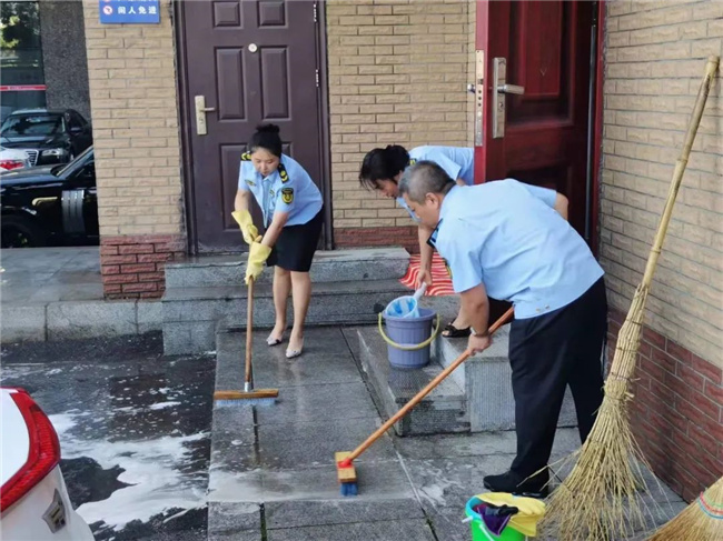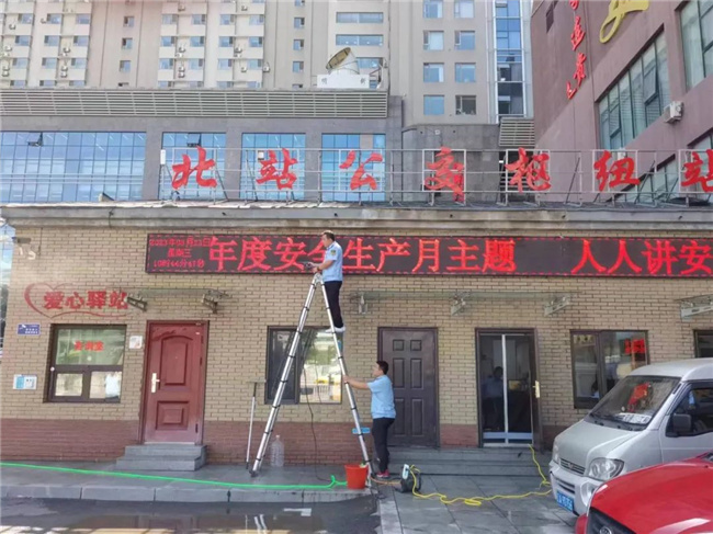 在活動(dòng)中,場站公司黨員干部職工化身“清潔員”,拿起清潔球、掃帚、鏟子、抹布等工具,對(duì)沈陽北站公交樞紐站的環(huán)境衛(wèi)生進(jìn)行大清掃。