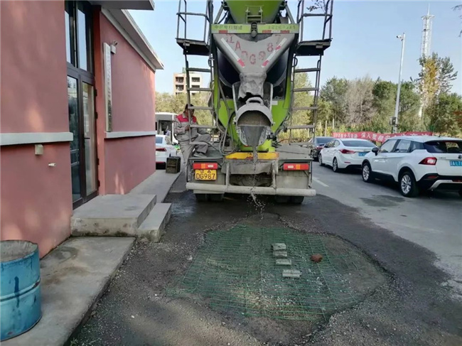 為了徹底解決這個問題,車隊(duì)租用了一臺大型水泥攪拌車,將購買的水泥等原材料進(jìn)行了均勻攪拌,隨后,車隊(duì)管理人員和駕駛員們齊上陣,將原來的大坑填成了一個微斜的平面。