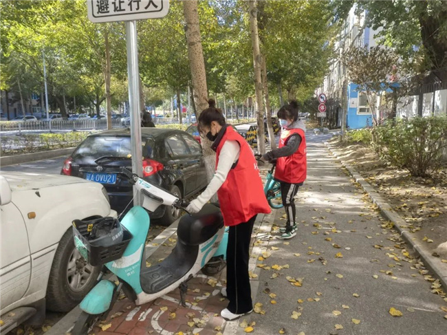 活動中,志愿者們身穿紅馬甲,拿著清掃工具來到活動地點,重點對社區(qū)道路、綠地、樓道車庫等公共區(qū)域進行清掃清潔,對住宅區(qū)內(nèi)生活垃圾、亂堆雜物等進行徹底清理,對公共設施上小招貼和噴涂廣告進行清除,擺放零散無序的共享單車。