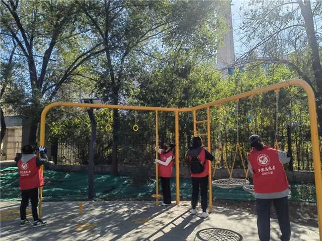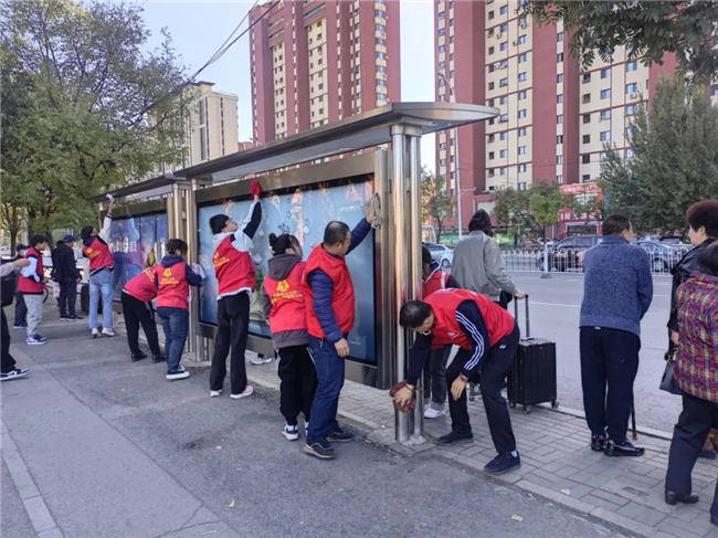活動中,大家充分發(fā)揚“不怕臟、不怕累”的奉獻精神,對車站的隔離護欄、侯車亭站牌及公園內(nèi)健身器材擦拭干凈,將路邊停放的共享單車擺放整齊,并清掃路邊落葉,用實際行動使周邊環(huán)境面貌煥然一新。