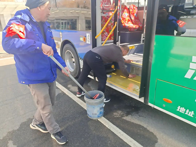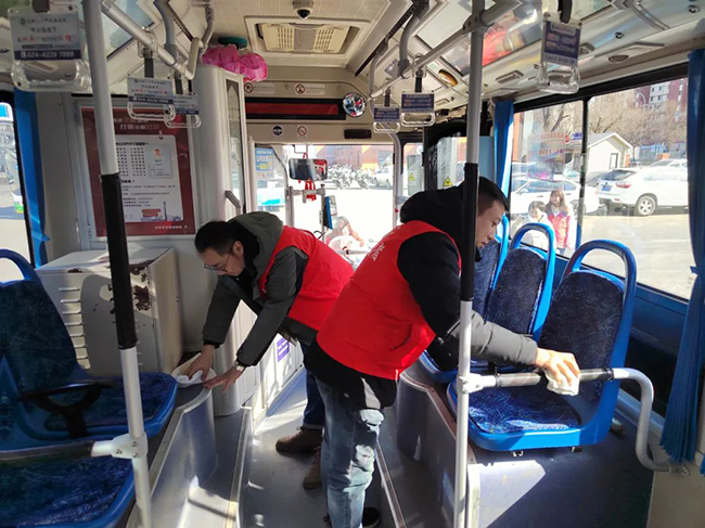 活動中,駕駛員們拿著抹布、拖把等清潔工具對車廂玻璃、座椅、地面、車身等部位進行清洗、擦拭。大家耐心細(xì)致,干勁十足,經(jīng)過一個小時的努力,車輛內(nèi)外被打掃得干干凈凈。
