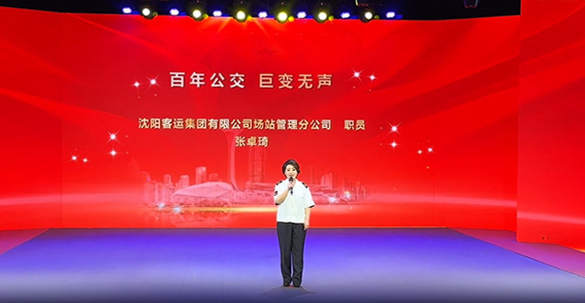 6月26日,主題演講決賽在沈陽廣播電視臺(tái)演播廳舉辦。張卓琦以“百年公交 巨變無聲”為主題,通過講述自己的乘車經(jīng)歷和參觀感悟,動(dòng)情地描繪了沈陽公交百年來的發(fā)展變化和公交人默默奉獻(xiàn)辛勤付出的奮斗歷程,并榮獲二等獎(jiǎng)。她的演講既有真摯的情感流露,又有激昂的言辭,深深打動(dòng)了在場(chǎng)的每一位聽眾,展現(xiàn)了新時(shí)代公交人的風(fēng)采。