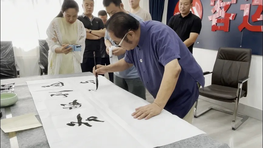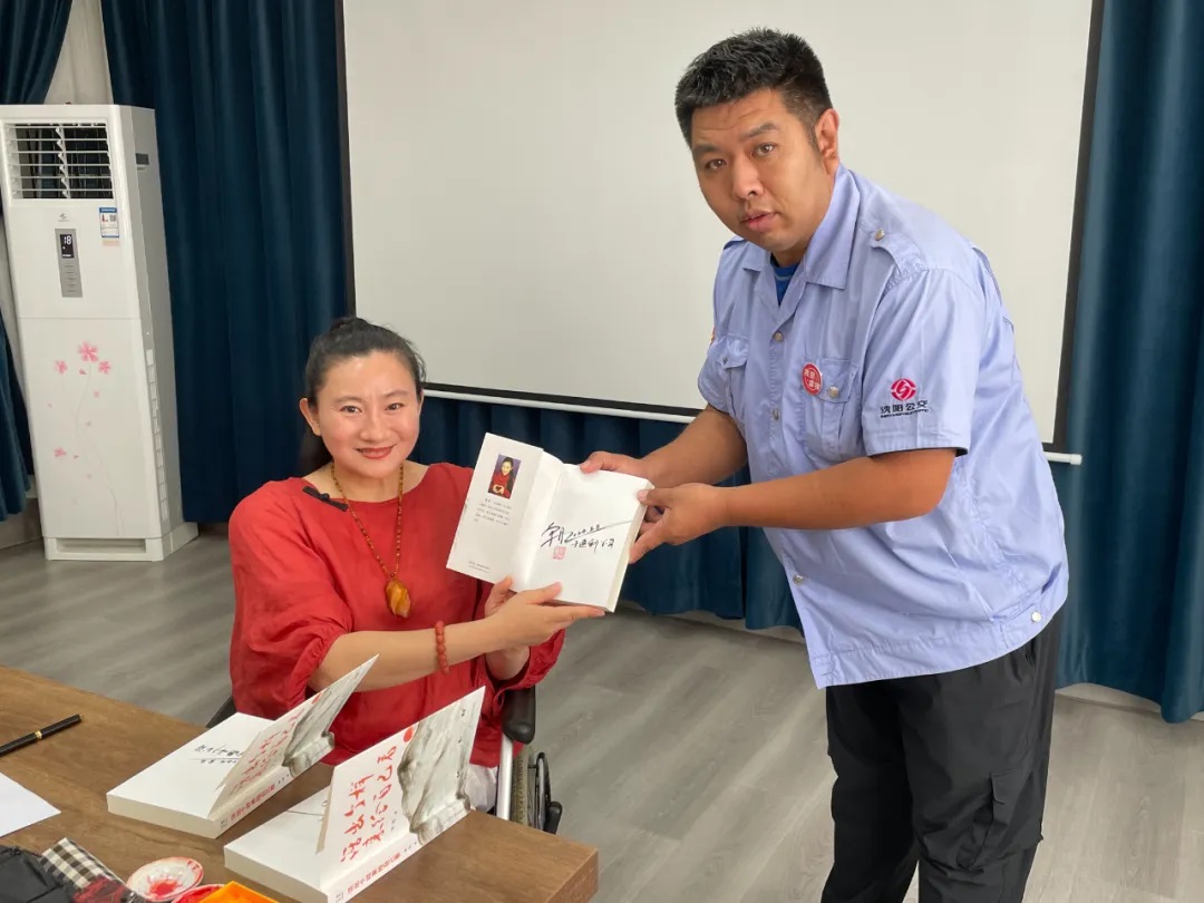 活動(dòng)中,單丹將自己創(chuàng)作的作品贈(zèng)送給駕駛員,單銳敏老師則現(xiàn)場揮毫潑墨,用書法表達(dá)美好祝福。