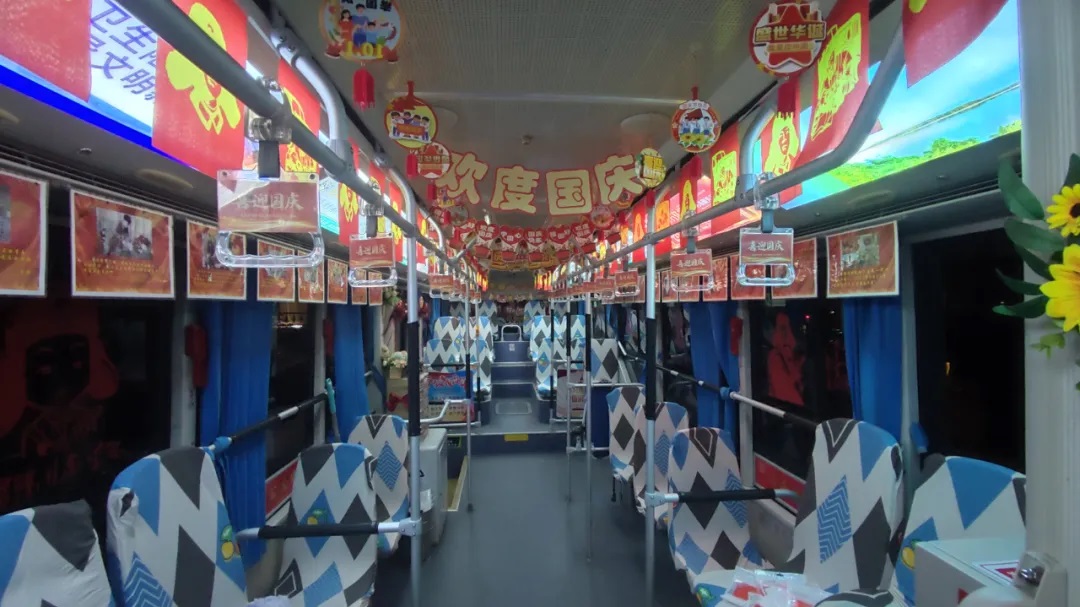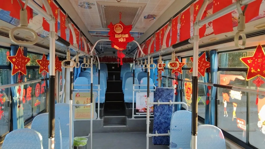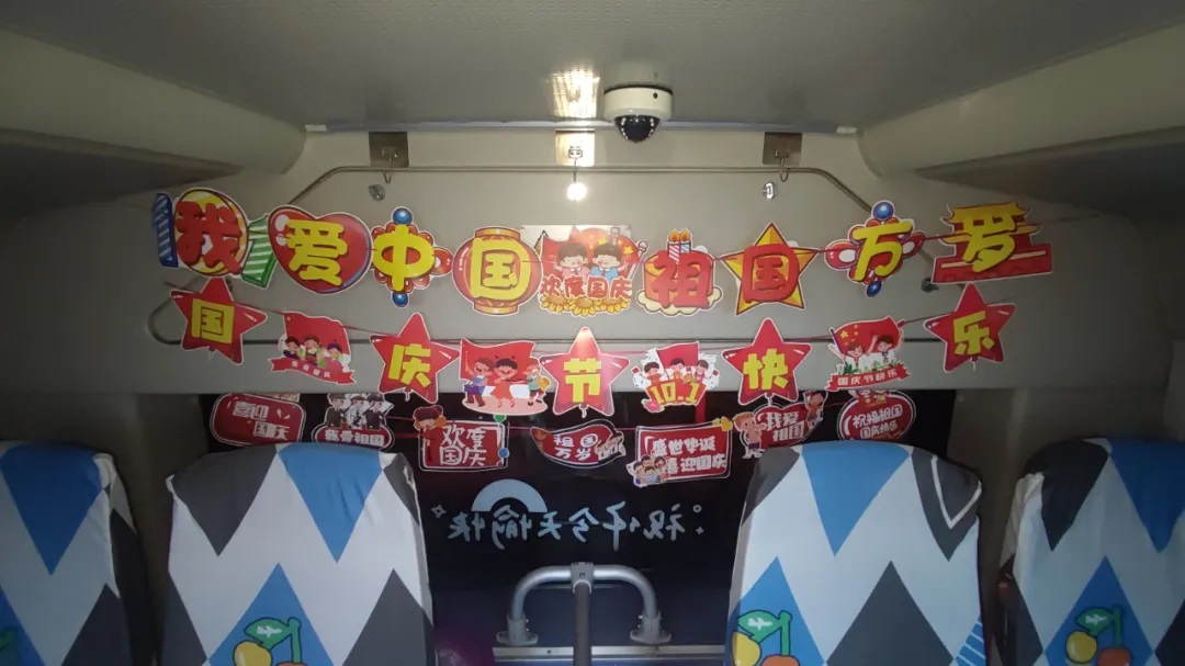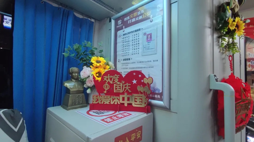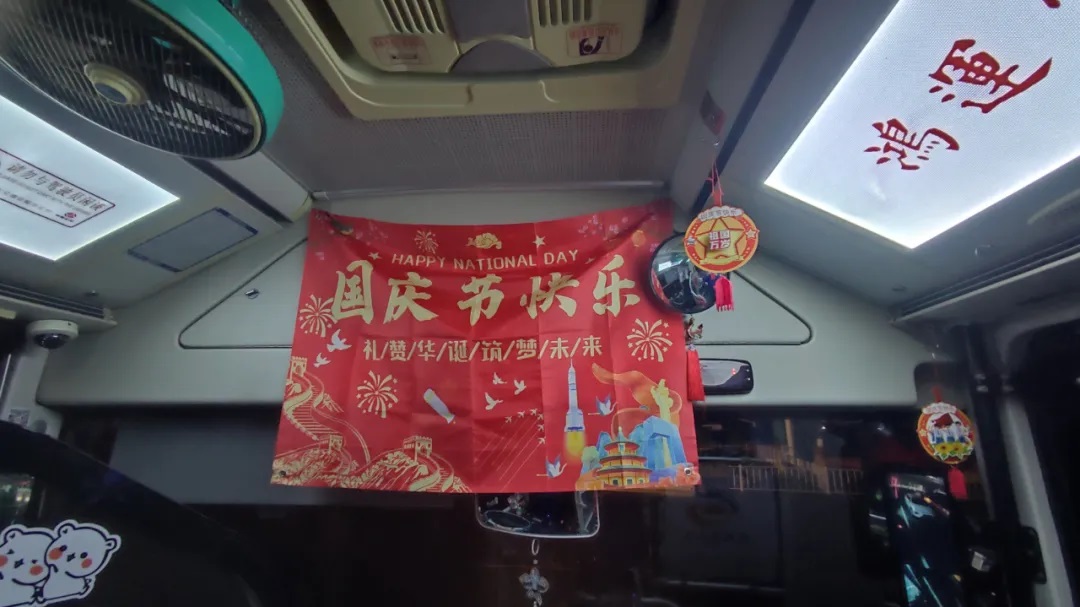 國(guó)慶前夕,駕駛員精心清潔車輛、裝扮車廂,處處洋溢著節(jié)日氣氛。