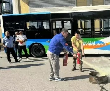 培訓(xùn)之后,在場(chǎng)人員來到公司院內(nèi)進(jìn)行實(shí)地綜合演練。針對(duì)公交車輛突發(fā)火災(zāi)、乘客攜帶易燃易爆物品乘車等情況,駕駛員如何緊急停車、疏散乘客、使用滅火器進(jìn)行撲救、處置危險(xiǎn)品等方面進(jìn)行了演練。