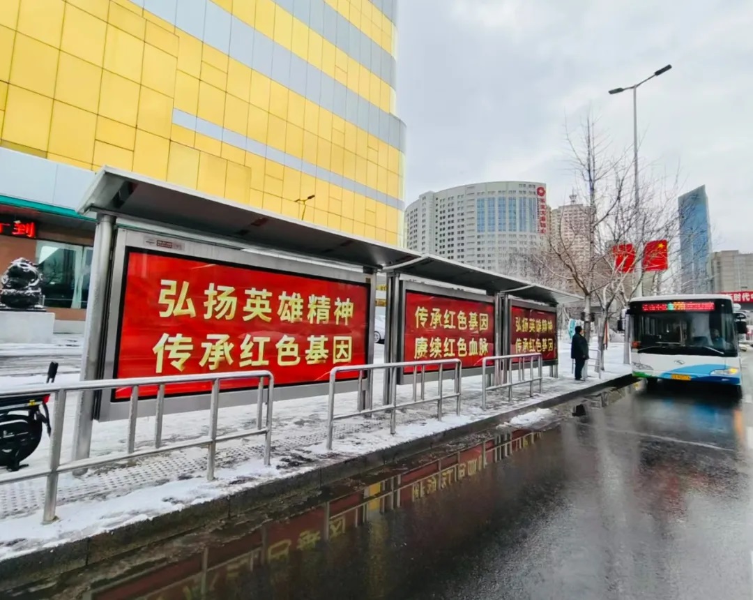 11月26日,雪后的沈陽青年大街主色調(diào)變成了紅色——沿線各類戶外電子屏幕、廣告看板、公交車候車亭,都打出了“致敬英雄 銘記英雄 崇尚英雄”“弘揚(yáng)英雄精神 傳承紅色基因”等標(biāo)語,迎接志愿軍烈士遺骸歸國。