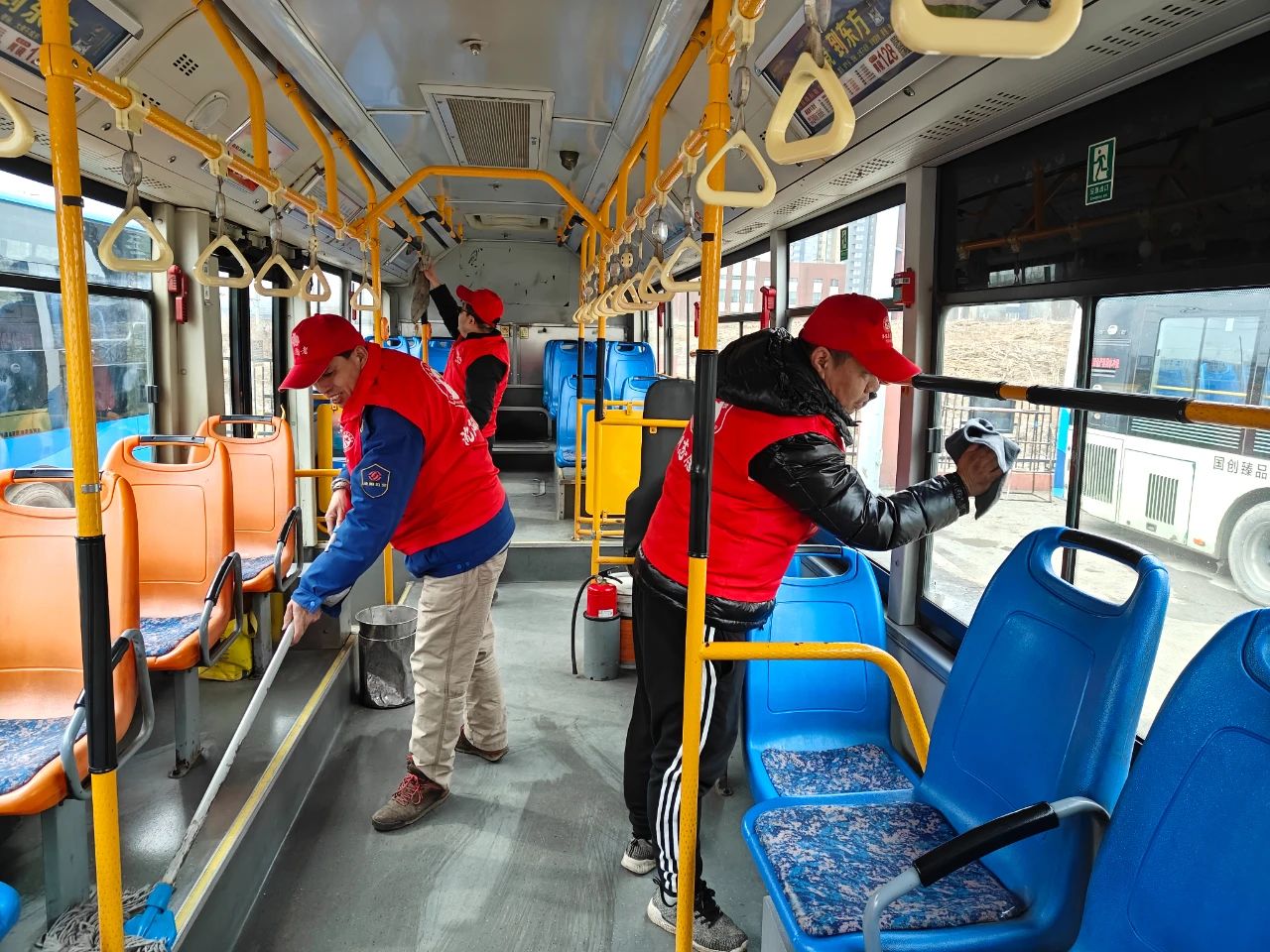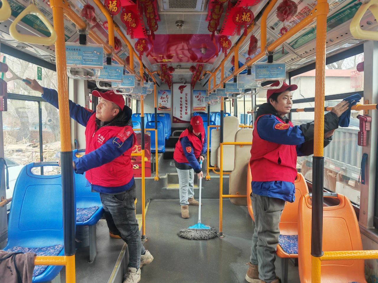 早春的寒風(fēng)依舊冷冽,活動(dòng)中,志愿者們不畏寒冷,身穿帶有志愿服務(wù)標(biāo)識(shí)的紅色馬甲,手拿清潔工具,對(duì)公交車輛、場(chǎng)站、候車?yán)鹊葓?chǎng)所進(jìn)行清掃,為乘客提供干凈舒適的出行環(huán)境。