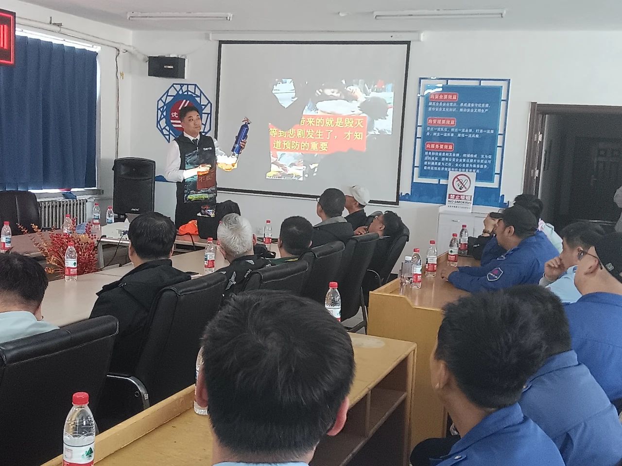 隨后,王殿陽主任通過投影將一例例觸目驚心的火災(zāi)案例呈現(xiàn)給在座的每一位職工,內(nèi)容涵蓋了企業(yè)安全生產(chǎn)及日常生活中常見的安全隱患排查等方面的知識,為安全防范敲響了警鐘。針對不同火情,王主任還為大家講解了如何正確使用各類滅火器,以提高自防自救能力,有效控制熄滅初期火情。