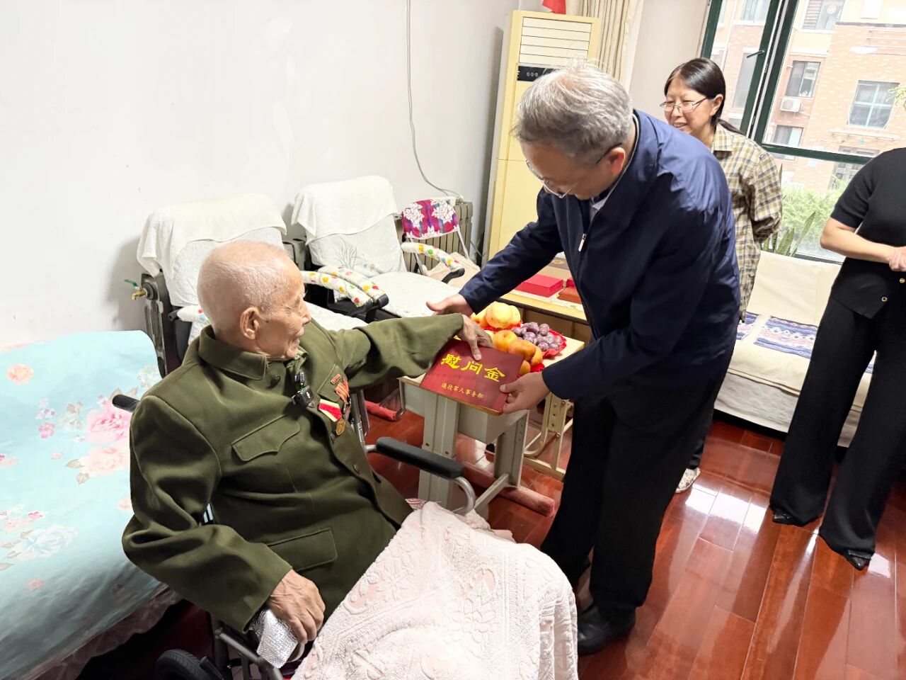 慰問過程中,韓宗森老同志與家人深情回顧了當(dāng)年的革命歷程,特別是抗戰(zhàn)時期的崢嶸歲月和英勇事跡?,F(xiàn)場氣氛熱烈,韓老還和大家一起高唱《中國人民志愿軍戰(zhàn)歌》。雖已年過九旬,他依然思維敏捷、聲音洪亮、精神矍鑠。在場的工作人員和退役軍人無不為之動容,自發(fā)地向韓老行莊嚴(yán)的軍禮,表達(dá)由衷的敬意。