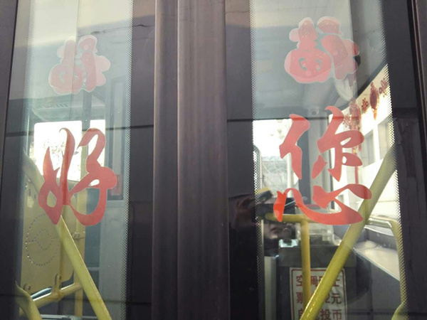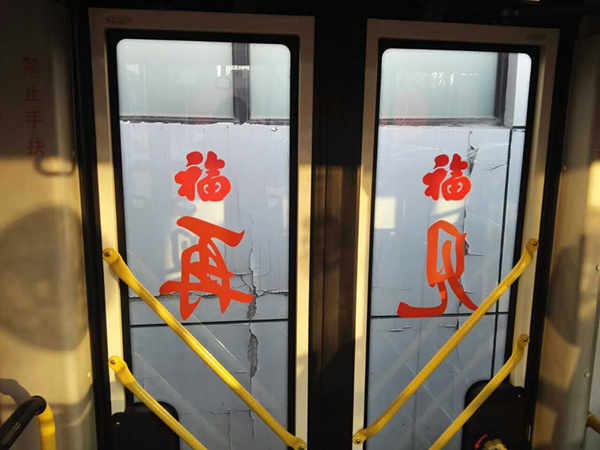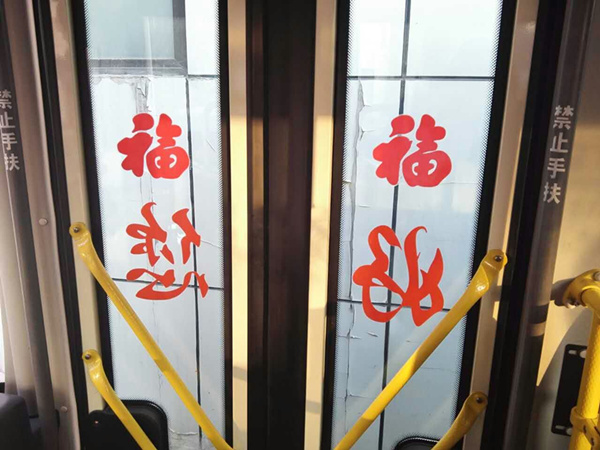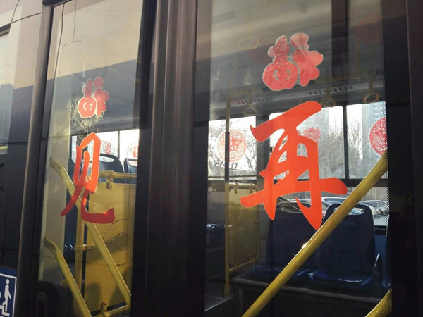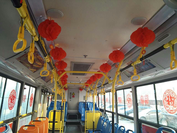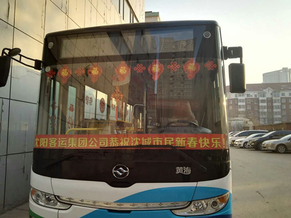 沈陽客運集團(tuán)公司精心布置了車輛,粘貼了新年祝福標(biāo)語、福字、窗花,懸掛中國結(jié)和小燈籠,在車廂內(nèi)進(jìn)行裝飾,營造出移動的溫馨家庭感覺。