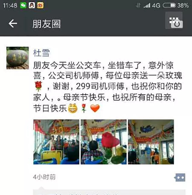 “歡迎您乘座黃河公司299路公交車,送您一只康乃馨,祝您節(jié)日快樂!”這是母親節(jié)當(dāng)天,299路駕駛員孫仁稼的一句問候?!笆墙o我的?謝謝,謝謝師傅!”收到康乃馨的乘客們感到非常驚喜,她們的臉上透著感動的笑容。這一天,孫仁稼的車廂里充滿著母親節(jié)的溫馨。乘客們紛紛留言贊美,轉(zhuǎn)發(fā)朋友圈傳遞喜悅。