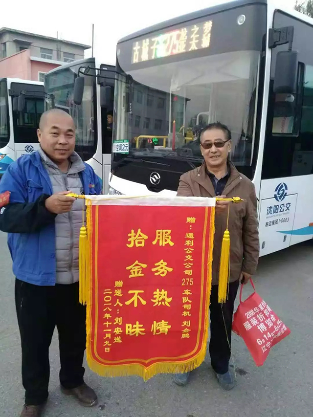 乘客劉先生隨后也到了龍之夢拿到了失而復得的巨額票據(jù),卻沒能見到駕駛員劉金鵬。幾日后乘客劉先生來到了龍之夢終點站為駕駛員劉金鵬送上了一面錦旗,稱贊275路車隊駕駛員拾金不昧,高尚品德,心系乘客…